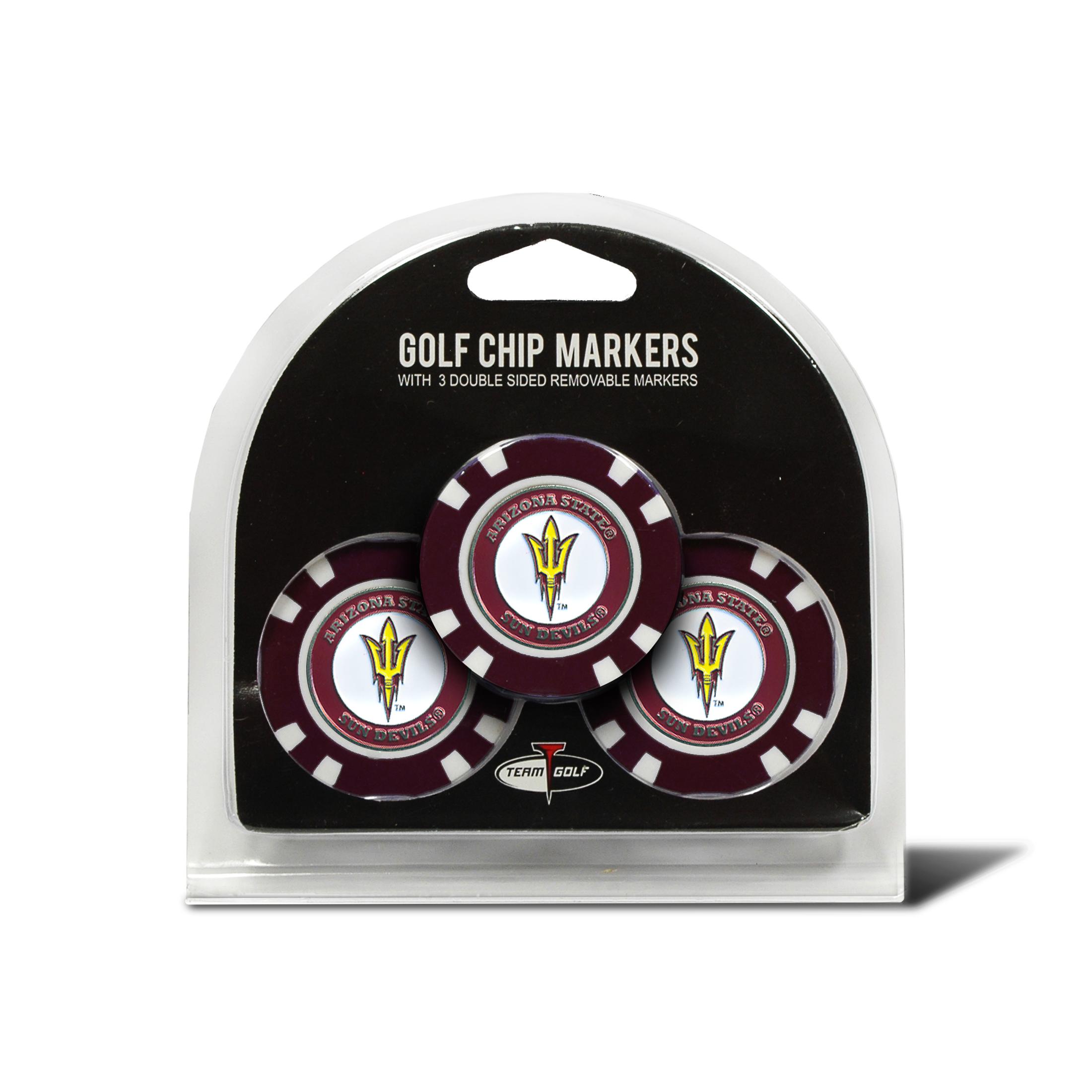 The Arizona State Sun Devils Poker Chip Ball Marker Gift Set perfect gift for any fan, student, or alumni. The Arizona State Sun Devils Poker Chips come with a Arizona State Sun Devils Team Logo Removable ball marker in the center of each chip.