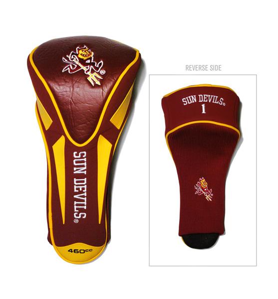 Arizona State Sun Devils Apex Driver Golf Head Cover Take your team pride to the golf course with this Arizona State Sun Devils Jumbo Apex Headcover. This Arizona State Sun Devils headcover is made of buffalo vinyl and synthetic suede with a truly sleek design. Fits all oversized Drivers. Includes 4 location team embroidery. Officially licensed by the NCAA