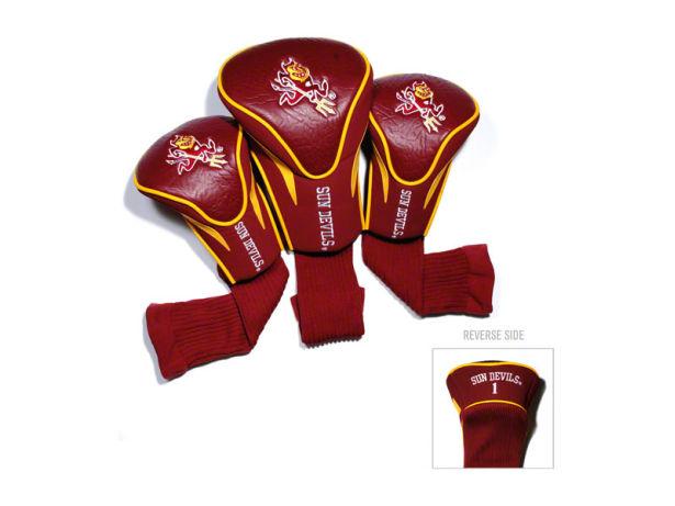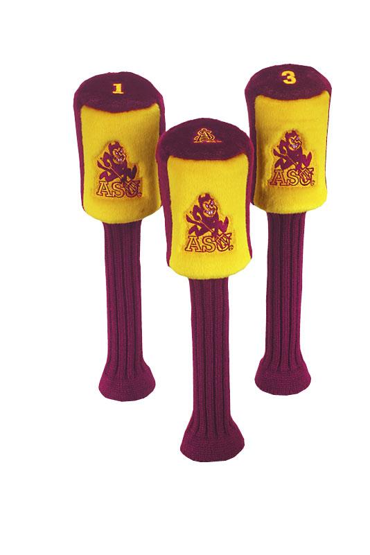 Arizona State Sun Devils Contour Fit Headcover Set. Take your team pride to the golf course with this Arizona State Sun Devils Contour Fit Headcover Set. Set includes 3 stylish contoured headcovers with innovative materials and sleek design - numbered 1, 3 and X. *The #1 fits all oversized drivers *Nylon sock protects shafts from damage *Officially licensed by the NCAA