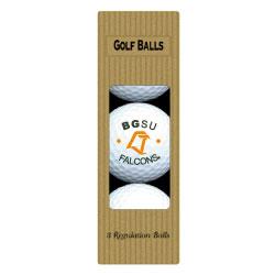 Three quality surlyn covered golf balls imprinted with the Bowling Green State Falcons college logo.