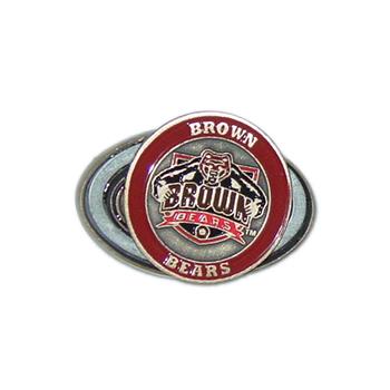 Large double-sided golf ball marker with the Brown Bears logo that is magnetically held to the metal clip which fits over the brim of your hat.