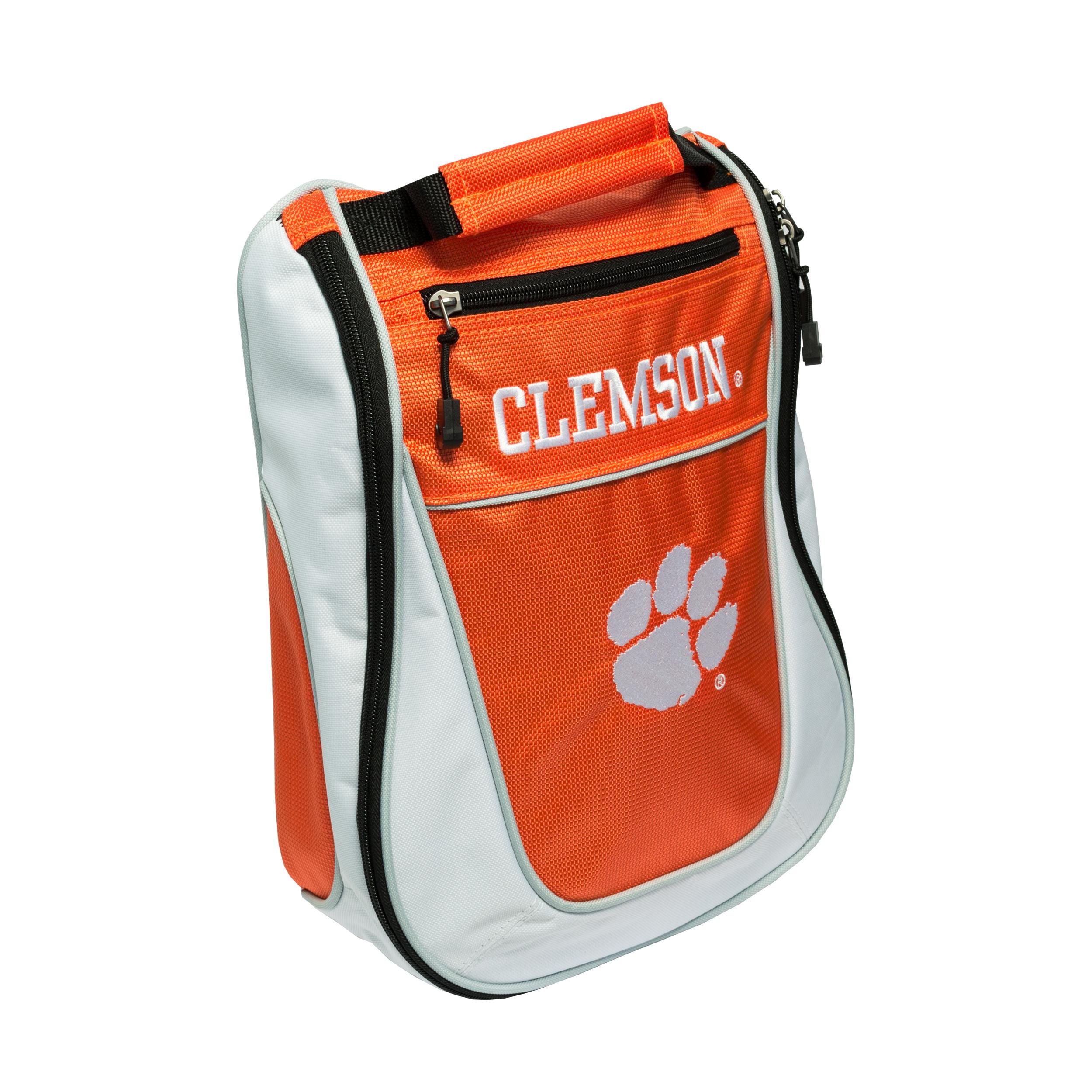All golfers know how important a good solid stance is when swinging a club. Why not protect those valuable golf shoes with this Clemson Tigers logo shoe bag. Each shoe bag features the Clemson Tigers logo and is made in the Clemson Tigers team colors.