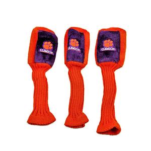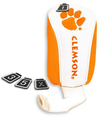 Clemson Tigers Contour Fit Headcover Set. Take your team pride to the golf course with this Clemson Tigers Contour Fit Headcover Set. Set includes 3 stylish contoured headcovers with innovative materials and sleek design - numbered 1, 3 and X. *The #1 fits all oversized drivers *Nylon sock protects shafts from damage *Officially licensed by the NCAA