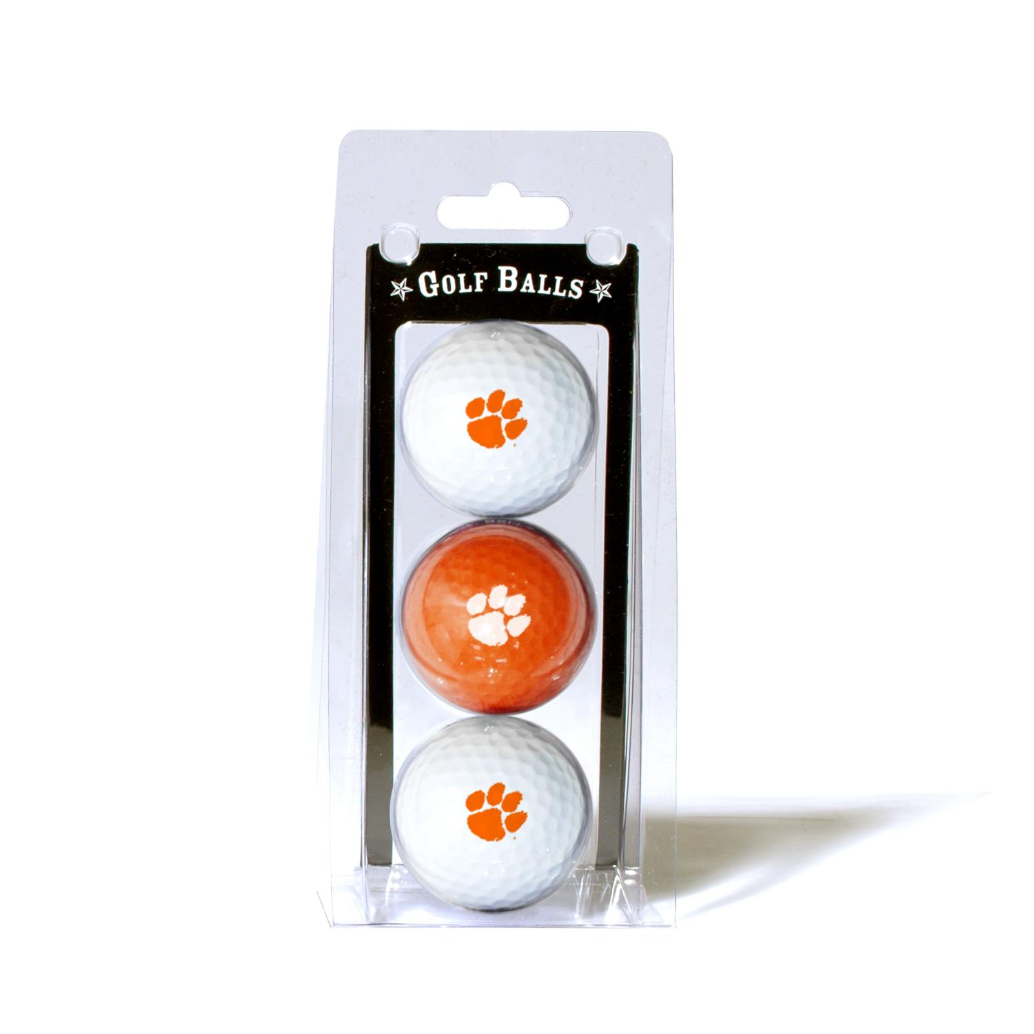 Three quality surlyn covered golf balls imprinted with the Clemson Tigers college logo.