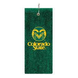 Premium weight 16" x 26" Colorado State Rams logo embroidered tri-fold golf towel made of sheared 100% cotton velour. Features a swivel clip attachment. Embroidered with the Colorado State Rams logo.
