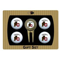 Cornell Big Red logo 4 ball divot tool gift set contains 4 regulation imprinted golf balls, brass divot tool and 1 removable imprinted magnetic ball marker.