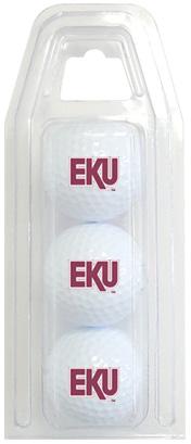 Three quality surlyn covered golf balls imprinted with the Eastern Kentucky Colonels college logo.
