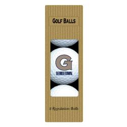 Three quality surlyn covered golf balls imprinted with the Georgetown Hoyas college logo.