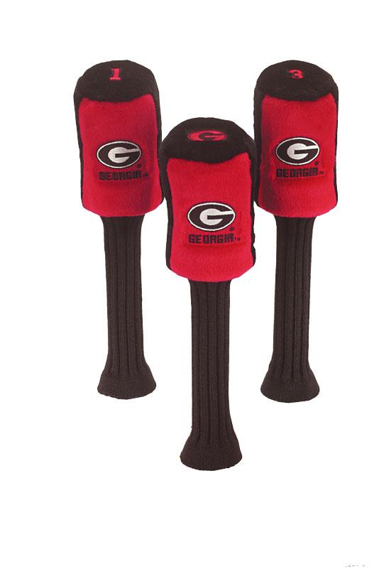Georgia Bulldogs Contour Fit Headcover Set. Take your team pride to the golf course with this Georgia Bulldogs Contour Fit Headcover Set. Set includes 3 stylish contoured headcovers with innovative materials and sleek design - numbered 1, 3 and X. *The #1 fits all oversized drivers *Nylon sock protects shafts from damage *Officially licensed by the NCAA