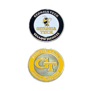 Large double-sided golf ball marker with the Georgia Tech Yellow Jackets logo.