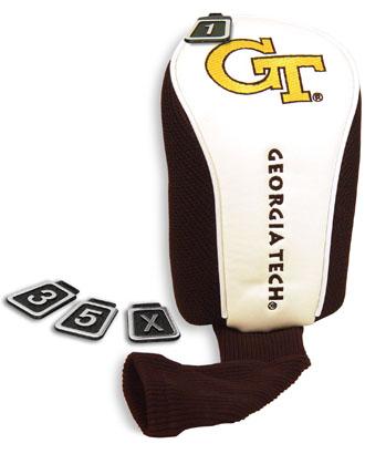 Georgia Tech Yellow Jackets Contour Fit Headcover Set. Take your team pride to the golf course with this Georgia Tech Yellow Jackets Contour Fit Headcover Set. Set includes 3 stylish contoured headcovers with innovative materials and sleek design - numbered 1, 3 and X. *The #1 fits all oversized drivers *Nylon sock protects shafts from damage *Officially licensed by the NCAA
