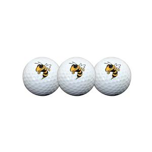 Three quality surlyn covered golf balls imprinted with the Georgia Tech Yellow Jackets college logo.