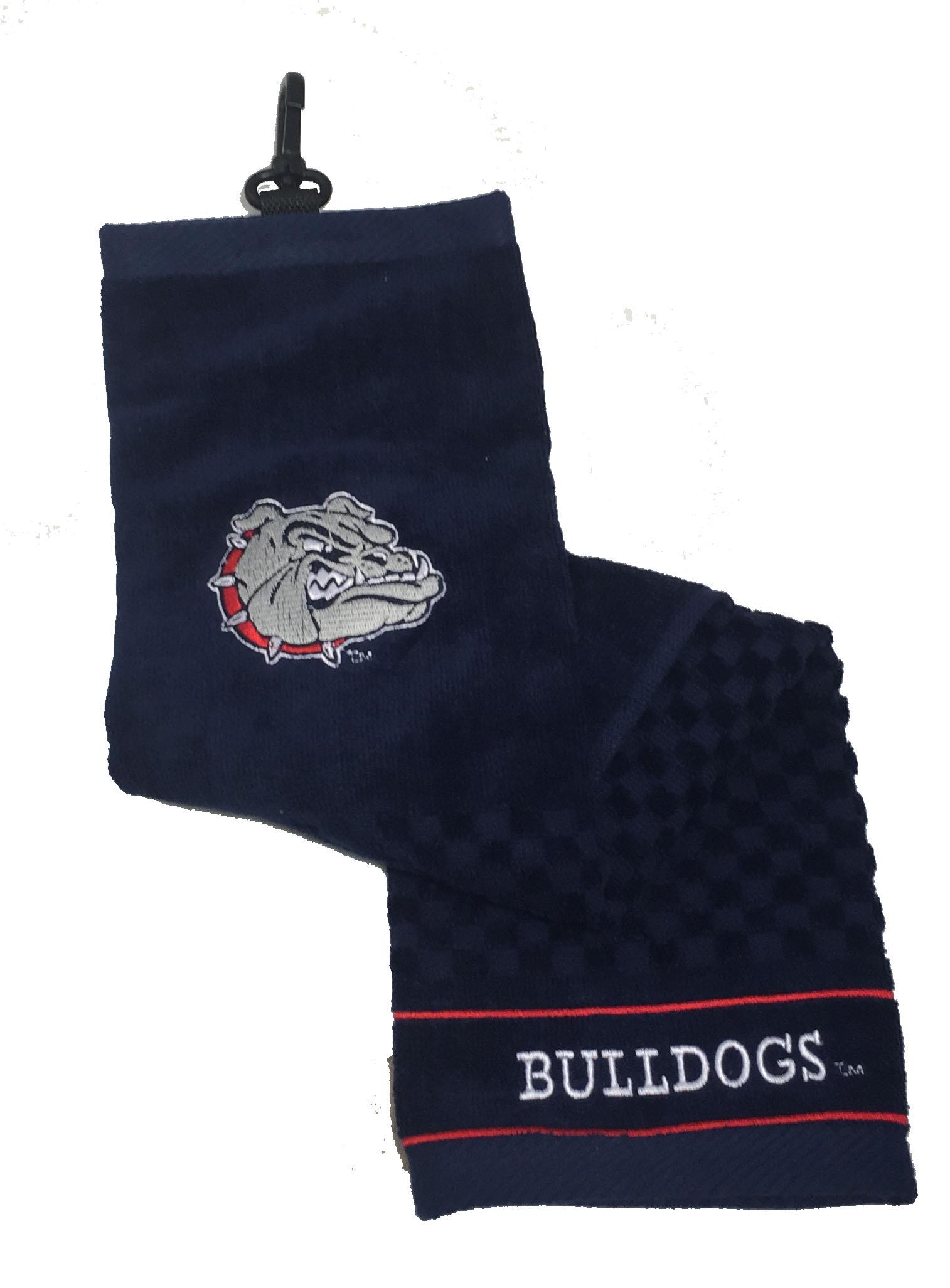 Premium weight 16" x 26" Gonzaga Bulldogs logo embroidered tri-fold golf towel made of sheared 100% cotton velour. Features a swivel clip attachment. Embroidered with the Gonzaga Bulldogs logo.