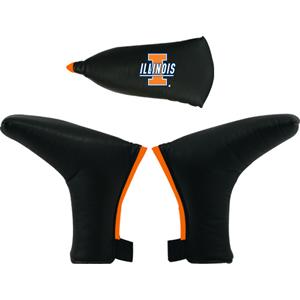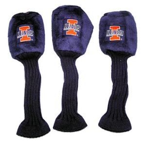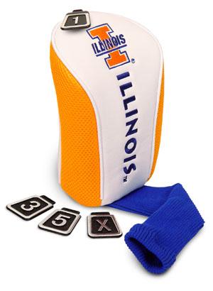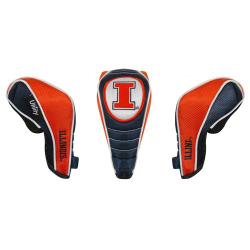 Illinois Illini Contour Fit Headcover Set. Take your team pride to the golf course with this Illinois Illini Contour Fit Headcover Set. Set includes 3 stylish contoured headcovers with innovative materials and sleek design - numbered 1, 3 and X. *The #1 fits all oversized drivers *Nylon sock protects shafts from damage *Officially licensed by the NCAA