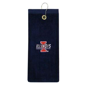 Premium weight 16" x 26" Illinois Illini logo embroidered tri-fold golf towel made of sheared 100% cotton velour. Features a swivel clip attachment. Embroidered with the Illinois Illini logo.