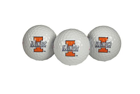 Three quality surlyn covered golf balls imprinted with the Illinois Illini college logo.