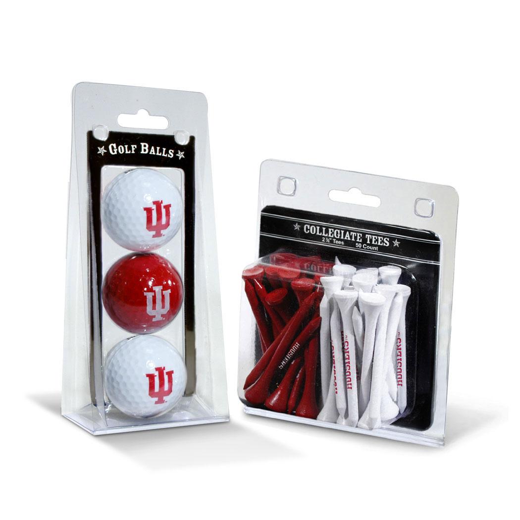 The Indiana Hoosiers clamshells include 3 regulation sized golf balls, each in a different color and 50 tees - 2.75" in length and come in 2 colors, each with a one color imprint