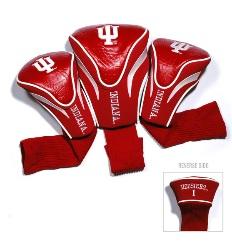 Indiana Hoosiers Contour Fit Headcover Set. Take your team pride to the golf course with this Indiana Hoosiers Contour Fit Headcover Set. Set includes 3 stylish contoured headcovers with innovative materials and sleek design - numbered 1, 3 and X. *The #1 fits all oversized drivers *Nylon sock protects shafts from damage *Officially licensed by the NCAA