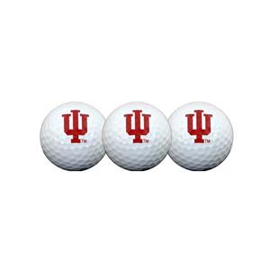 Three quality surlyn covered golf balls imprinted with the Indiana Hoosiers college logo.