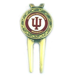 Indiana Hoosiers logo golf divot repair tool is a vital component for every golfer's game. Heavy gauge metal construction that will provide years of use to repair divots, mark your ball, and clean turf from your cleats. Top design of the Indiana Hoosiers logo divot repair tool is ideal for a club holder, and the integrated clip offers versatility, which can be used as a money clip or to hold the tool securely to your pocket or belt. Beautiful antique brass finish and approximately 3" in length. Large ball marker on the front that is magnetically held to tool with the Indiana Hoosiers logo and smaller marker on back of the Indiana Hoosiers logo divot repair tool that is magnetically held in place.