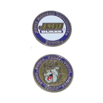 Large double-sided golf ball marker with the James Madison Dukes logo.
