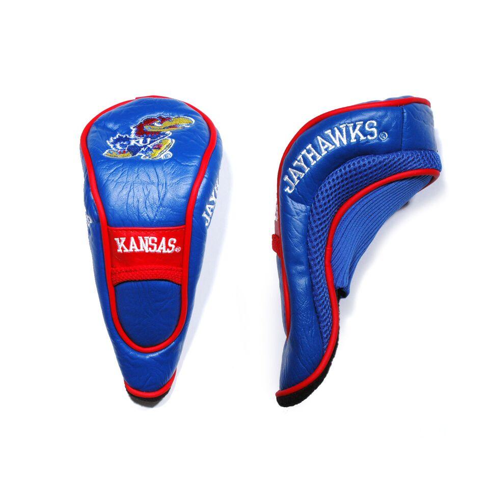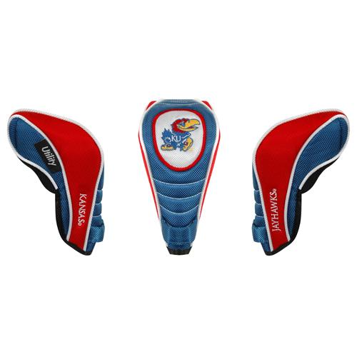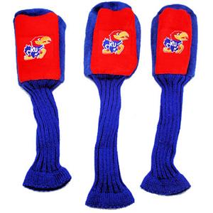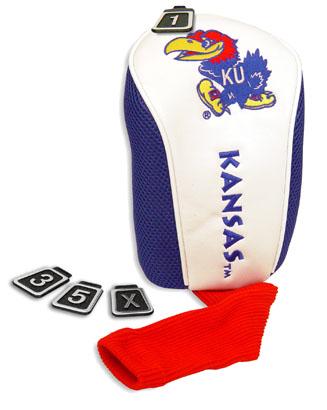 Kansas Jayhawks Contour Fit Headcover Set. Take your team pride to the golf course with this Kansas Jayhawks Contour Fit Headcover Set. Set includes 3 stylish contoured headcovers with innovative materials and sleek design - numbered 1, 3 and X. *The #1 fits all oversized drivers *Nylon sock protects shafts from damage *Officially licensed by the NCAA