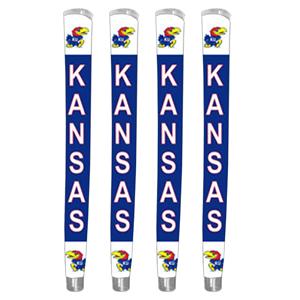 The Kansas Jayhawks Oversize Logo Golf Grips are the hottest golf grips on the market. The Kansas Jayhawks team logo is visible on the top of the grip as well as along the front face of the grip. The Kansas Jayhawks Oversize Logo Golf Grip provides exceptional feel and texture while on the course. The Kansas Jayhawks Oversize Logo Golf Grip also features a removable gel-top ball marker that features the Kansas Jayhawks team logo.