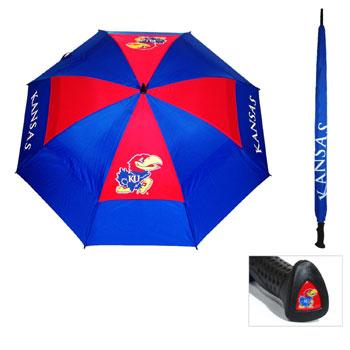The Kansas Jayhawks Logo Golf Umbrella spans 62 inches and contains 4 Kansas Jayhawks logo panels. The Kansas Jayhawks logo golf umbrella has a double canopy design and comes with a cover.