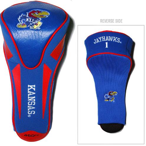 Kansas Jayhawks Apex Driver Golf Head Cover Take your team pride to the golf course with this Kansas Jayhawks Jumbo Apex Headcover. This Kansas Jayhawks headcover is made of buffalo vinyl and synthetic suede with a truly sleek design. Fits all oversized Drivers. Includes 4 location team embroidery. Officially licensed by the NCAA