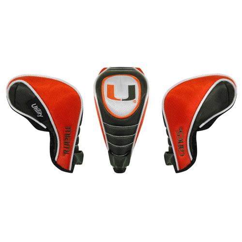 Miami Hurricanes Contour Fit Headcover Set. Take your team pride to the golf course with this Miami Hurricanes Contour Fit Headcover Set. Set includes 3 stylish contoured headcovers with innovative materials and sleek design - numbered 1, 3 and X. *The #1 fits all oversized drivers *Nylon sock protects shafts from damage *Officially licensed by the NCAA