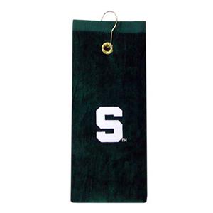 Premium weight 16" x 26" Michigan State Spartans logo embroidered tri-fold golf towel made of sheared 100% cotton velour. Features a swivel clip attachment. Embroidered with the Michigan State Spartans logo.