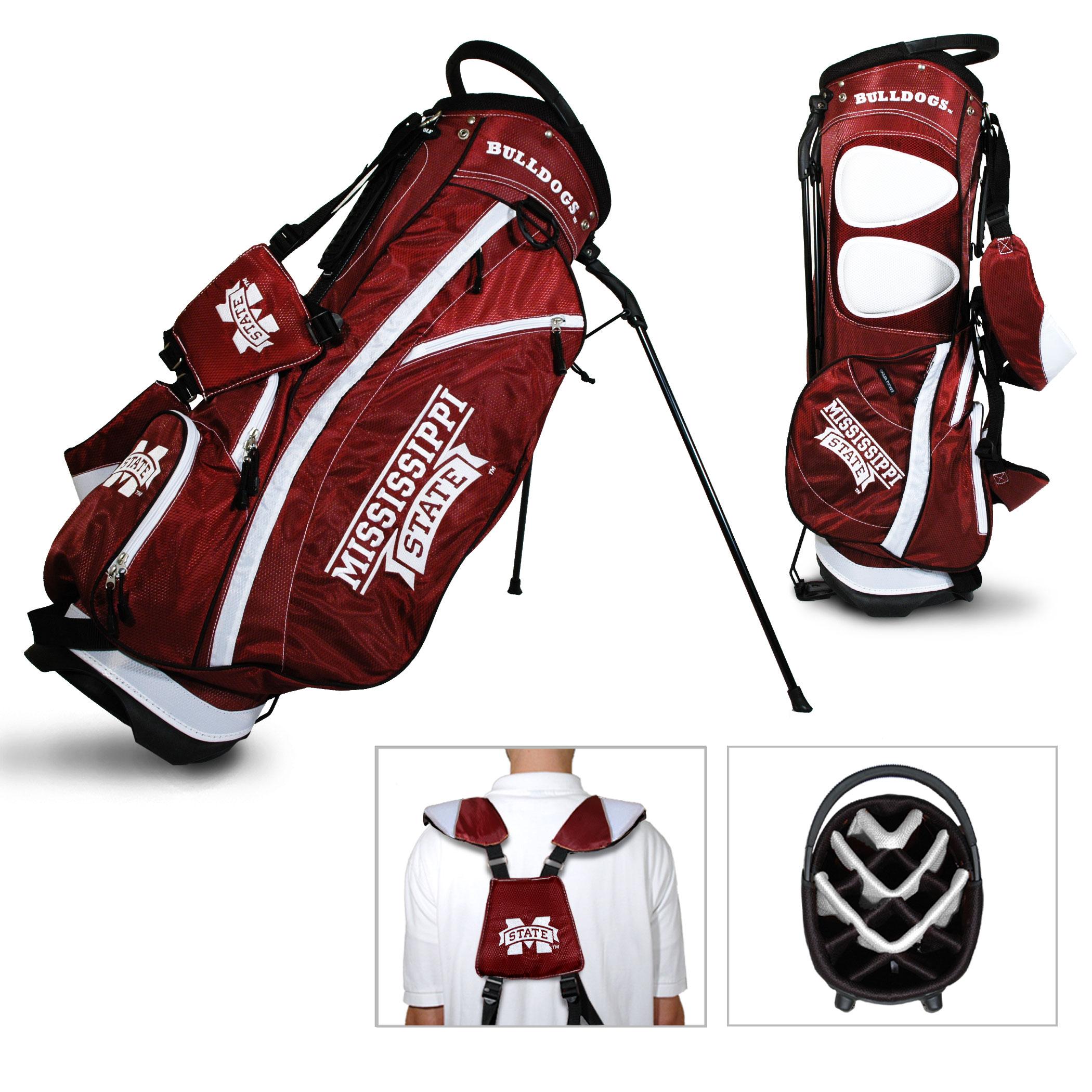 The Mississippi State Bulldogs Logo Golf Stand Bag is a lightweight golf stand bag, which includes 5 Mississippi State Bulldogs embroideries, 7-way full-length dividers, 6 zippered pockets, padded dual strap for easy carry, removable rain hood, umbrella holder, towel ring, velcro glove holder and easy-to-use stand system.