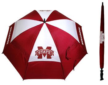 The Mississippi State Bulldogs Logo Golf Umbrella spans 62 inches and contains 4 Mississippi State Bulldogs logo panels. The Mississippi State Bulldogs logo golf umbrella has a double canopy design and comes with a cover.
