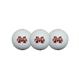 Three quality surlyn covered golf balls imprinted with the Mississippi State Bulldogs college logo.
