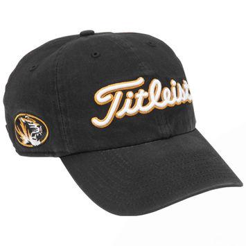 The Missouri Tigers Logo Titleist Hat is an unstructured, cotton twill design with a popular pre-curved bill. The Missouri Tigers Logo Titleist Hat has contrasting eyelets and buttons . There is a Titleist logo in raised embroidery on the front with a Titleist logo on and the Missouri Tigers logo on the right side. Please indicate size when checking out M/L or L/XL