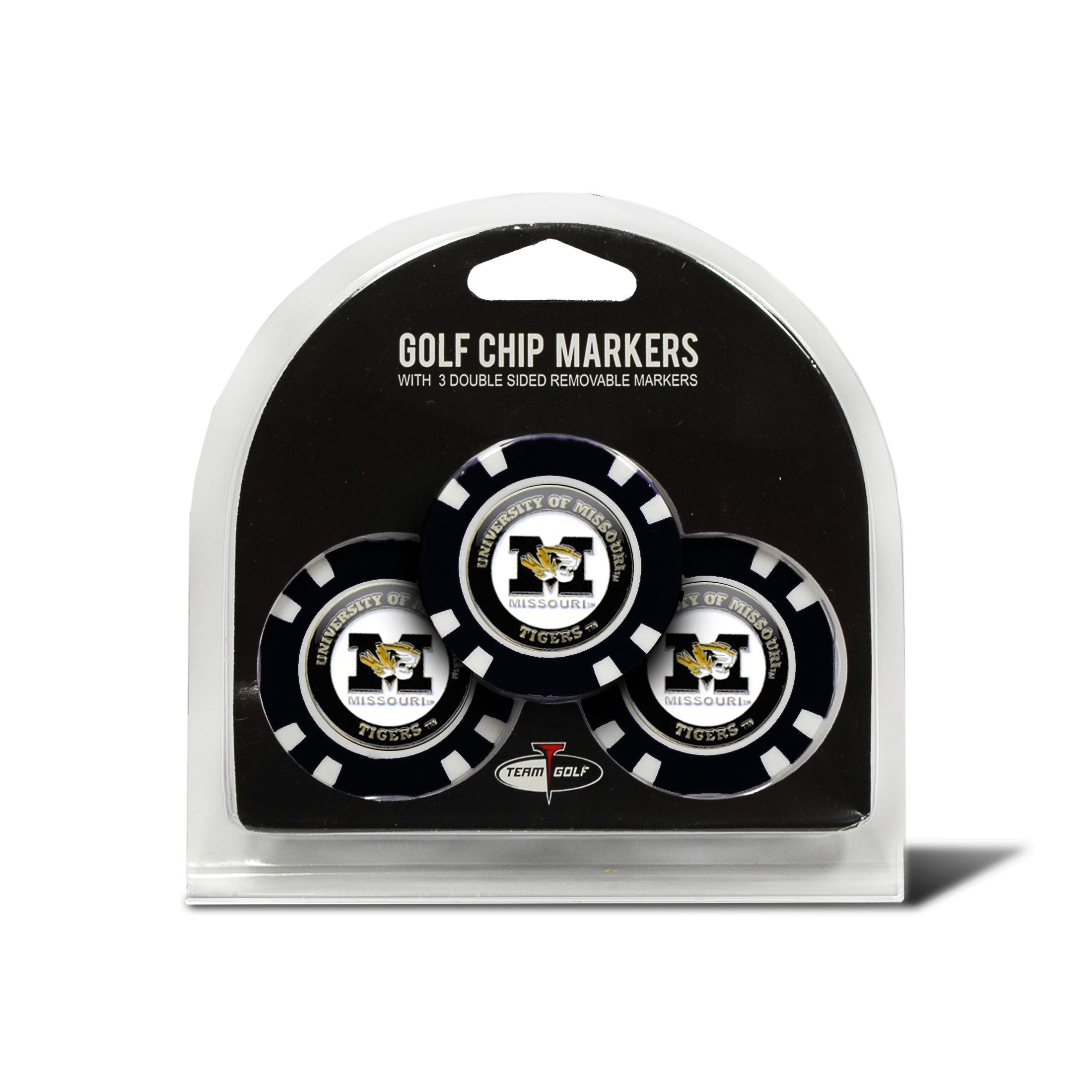 The Missouri Tigers Poker Chip Ball Marker Gift Set perfect gift for any fan, student, or alumni. The Missouri Tigers Poker Chips come with a Missouri Tigers Team Logo Removable ball marker in the center of each chip.