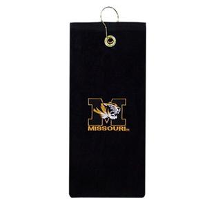 Premium weight 16" x 26" Missouri Tigers logo embroidered tri-fold golf towel made of sheared 100% cotton velour. Features a swivel clip attachment. Embroidered with the Missouri Tigers logo.