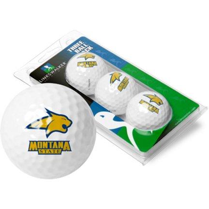 Three quality surlyn covered golf balls imprinted with the Montana State Fighting Bobcats college logo.