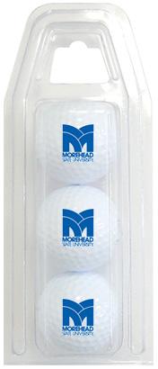 Three quality surlyn covered golf balls imprinted with the Morehead State Eagles college logo.