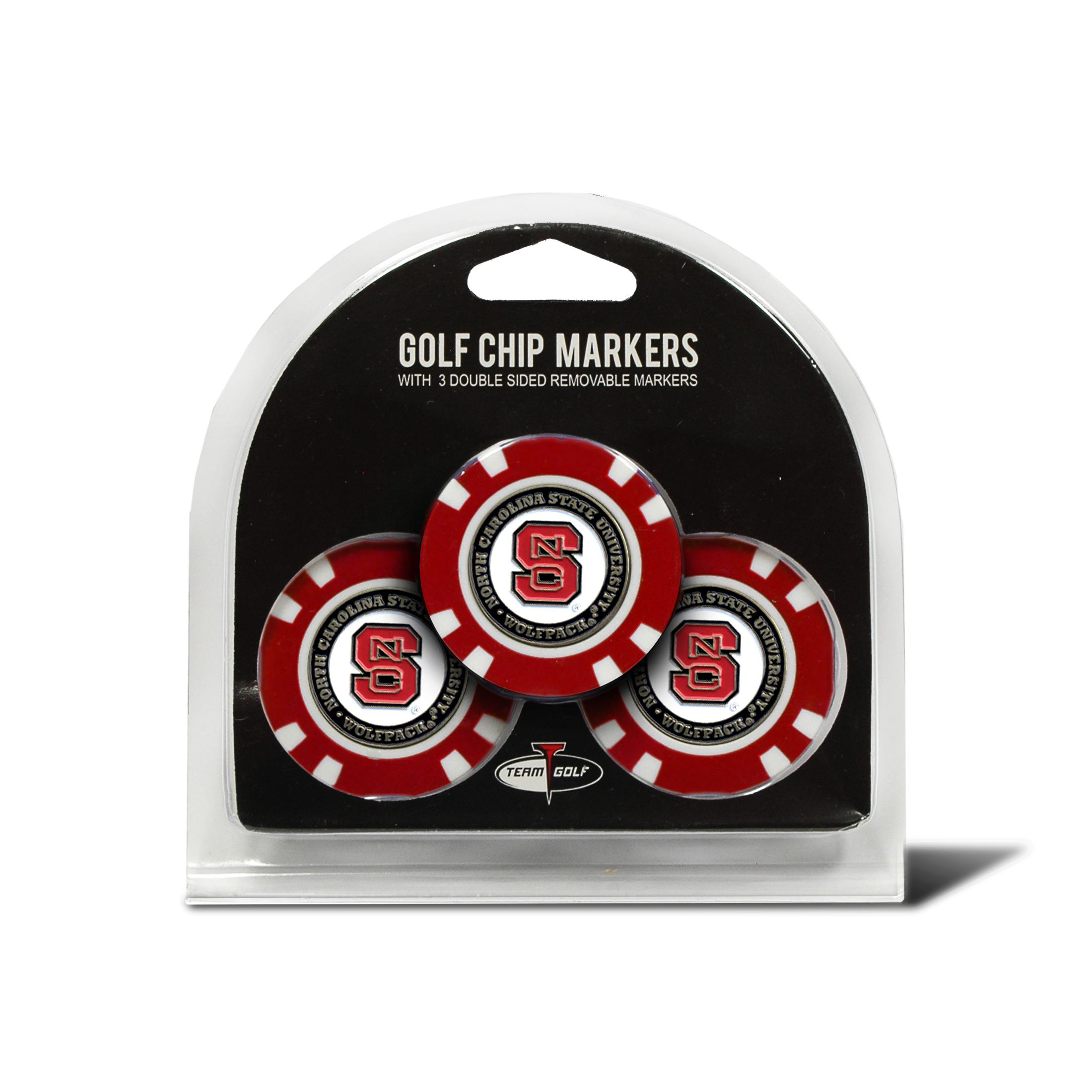The North Carolina State Wolf Pack Poker Chip Ball Marker Gift Set perfect gift for any fan, student, or alumni. The North Carolina State Wolf Pack Poker Chips come with a North Carolina State Wolf Pack Team Logo Removable ball marker in the center of each chip.