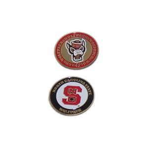 Large double-sided golf ball marker with the North Carolina State Wolf Pack logo.