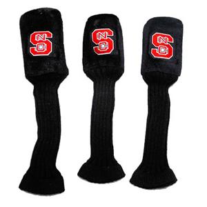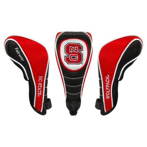 North Carolina State Wolf Pack Contour Fit Headcover Set. Take your team pride to the golf course with this North Carolina State Wolf Pack Contour Fit Headcover Set. Set includes 3 stylish contoured headcovers with innovative materials and sleek design - numbered 1, 3 and X. *The #1 fits all oversized drivers *Nylon sock protects shafts from damage *Officially licensed by the NCAA