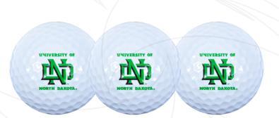 Three quality surlyn covered golf balls imprinted with the North Dakota Fighting Sioux college logo.