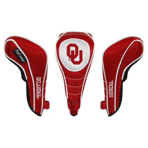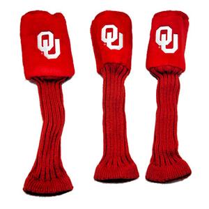 Oklahoma Sooners Contour Fit Headcover Set. Take your team pride to the golf course with this Oklahoma Sooners Contour Fit Headcover Set. Set includes 3 stylish contoured headcovers with innovative materials and sleek design - numbered 1, 3 and X. *The #1 fits all oversized drivers *Nylon sock protects shafts from damage *Officially licensed by the NCAA