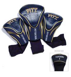 Pittsburgh Panthers Contour Fit Headcover Set. Take your team pride to the golf course with this Pittsburgh Panthers Contour Fit Headcover Set. Set includes 3 stylish contoured headcovers with innovative materials and sleek design - numbered 1, 3 and X. *The #1 fits all oversized drivers *Nylon sock protects shafts from damage *Officially licensed by the NCAA