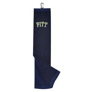 Premium weight 16" x 26" Pittsburgh Panthers logo embroidered tri-fold golf towel made of sheared 100% cotton velour. Features a swivel clip attachment. Embroidered with the Pittsburgh Panthers logo.