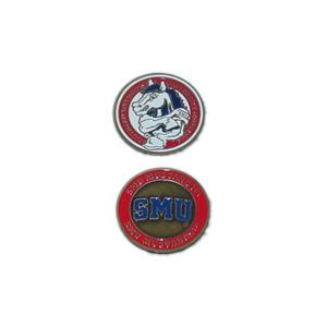 Large double-sided golf ball marker with the Southern Methodist Mustangs logo.