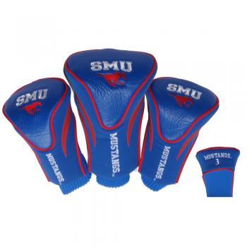 Southern Methodist Mustangs Contour Fit Headcover Set. Take your team pride to the golf course with this Southern Methodist Mustangs Contour Fit Headcover Set. Set includes 3 stylish contoured headcovers with innovative materials and sleek design - numbered 1, 3 and X. *The #1 fits all oversized drivers *Nylon sock protects shafts from damage *Officially licensed by the NCAA