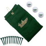 Each South Florida Bulls logo embroidered golf gift set includes a 16" X 26" embroidered tri-fold South Florida Bulls golf towel, 3 regulation South Florida Bulls golf balls, and 12 golf tees.