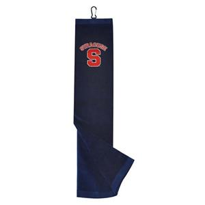 Premium weight 16" x 26" Syracuse Orangemen logo embroidered tri-fold golf towel made of sheared 100% cotton velour. Features a swivel clip attachment. Embroidered with the Syracuse Orangemen logo.
